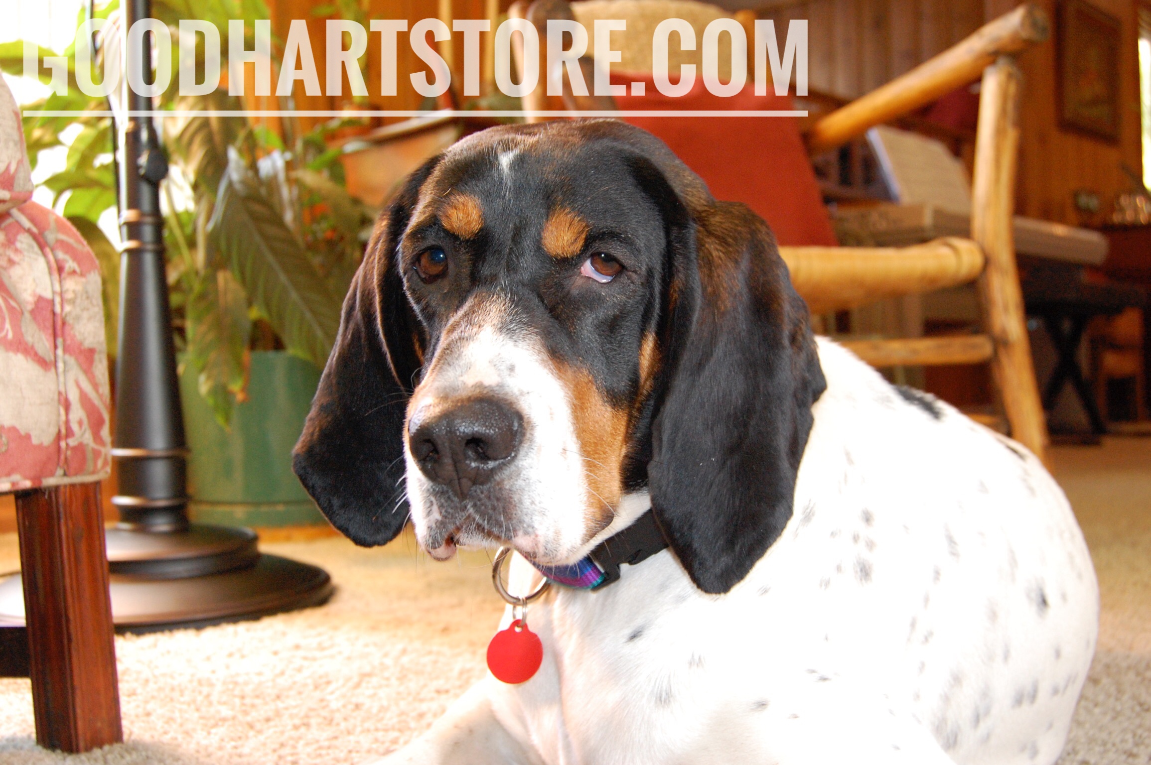 Maggie is the resident hound here in downtown Good Hart. As the “new hound in town”, she's done a fabulous job representing us these past few years. Maggie was adopted just two weeks after the sad and unexpected passing of Jessie the Hound, our beloved rescue walker coonhound that did the finest job any dog could do being the face of Good Hart for over 8 years. Maggie’s was bounced around a bit in her short life but she finally settled in here and we’re thrilled to have her running our show. Maggie's the one who emails our customers so be sure to sign-up for her updates and you'll be in the know on all things Good Hart.